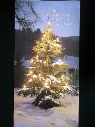 オーストリアの冬は、この絵ハガキのように、本当の樅の木に本当の雪が積もるのでとても美しいです。
