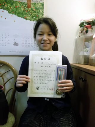 ←べーテン音楽コンクールバロックコースの全国大会で、第3位を受賞された、小学5年生の大原陽向さん。