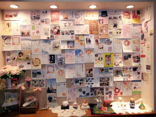 ←お年賀状。レッスン室に入るなり、生徒さん達、自分のはどこにあるか?カルタ取りみたいに探しています。