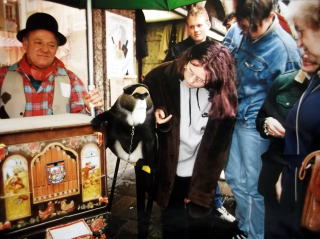 ←ザルツブルグの街角で。手回しオルガンの横に手長ザル!?