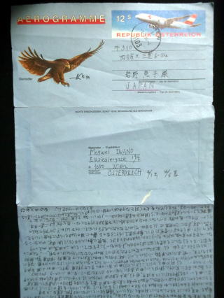 1996年1月21日 ウィーンから両親へ宛てた航空書簡から・・・