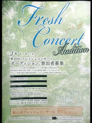 令和2年1月25日(土)奏心会主催第10回フレッシュコンサート オーディション参加者募集中