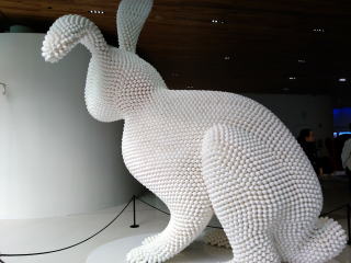 フィンランドのヘルシンキにある、ファッツェルチョコレート工場の玄関前には、こんなウサギがド~ンと待ち構えています。