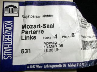 ←スヴャストラフ・リヒテルのピアノリサイタルのチケット、ウィーンのコンツェルトハウスで。