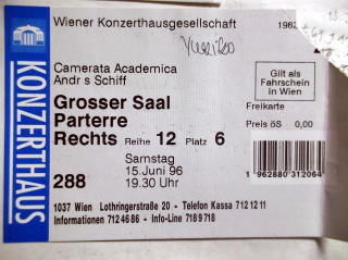 ←アンドラーシュ・シフのコンサートのチケット。ウィーンのコンツェルトハウスで。