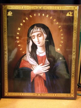 「見える?聖母マリアは、この人ね。イエスキリストを生んだお母さんね」。と写真を見せながら説明すると、
