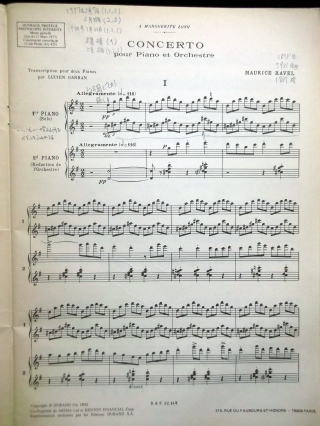 ←ラヴェルのピアノ協奏曲G-durの楽譜。
