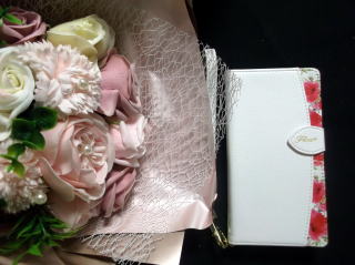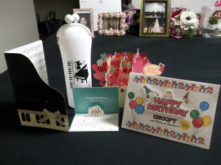 ←綺麗なお花や、寄せ書き、カードや、スマホケースを頂きました。