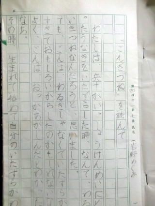 ←私が小学4年生の時に書いた、「ごんぎつね」の読書感想文。