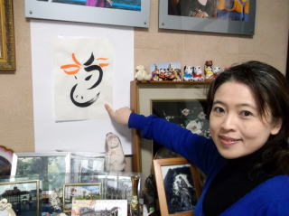 私の指さしているところ、今年の干支の「うし」も書道で絵を書いてくれました!