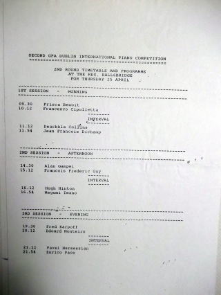 ダブリン国際コンクールに連れて行って下さった私の恩師が、「朝9時半から、夜11時頃まで、毎日リサイタルプログラムを聴くんだぜ。