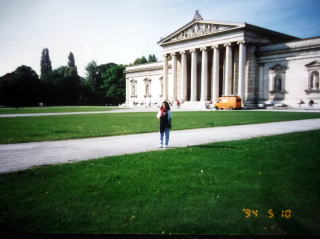 ←ミュンヘン国立音大の近くで。この季節のミュンヘンは、緑が鮮やかで、空気は澄んで、格別に美しかったです。今から27年も前の事です。