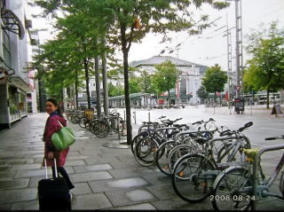 ←ザルツブルグ中央駅前で。ザルツブルグは、よく雨が降ります。