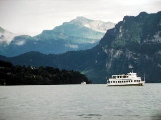 ←スイス、ルツェルンのフィーアヴァルトシュテッター湖で。