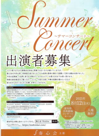 令和3年5月7日(金)奏心会主催「サマーコンサート」出演者募集