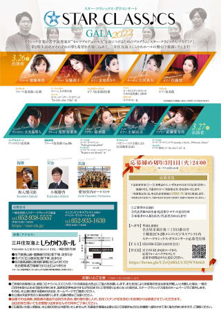 ←3月26日(土)午後15時開演、しらかわホールでスタークラシックス・ガラコンサートが開催されます。