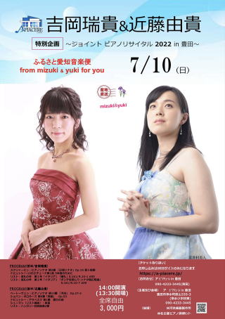 7月10日(日)ア ピアチェーレ in 豊田で現在、愛知県立芸術大学3年生の吉岡瑞貴さんが、ジョイントリサイタルを開催されます。