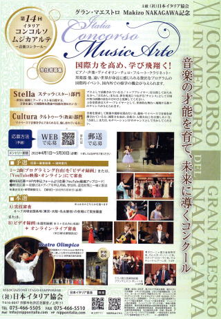 ←第14回イタリアコンコルソムジカアルテ音楽コンクールが今年も開催されます。