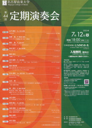 ←2022年7月12日(火)しらかわホールで名古屋音楽大学の第44回定期演奏会が開催されます。(18時開演)