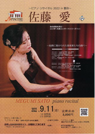佐藤愛さんのピアノリサイタルが開催されます。