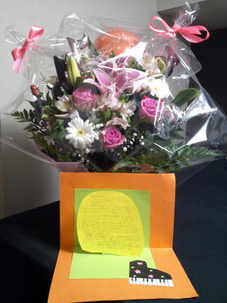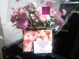 今日は、ウィーンやハンガリーに留学している生徒さんや、ご結婚された生徒さんから、又、東京に行かれた生徒さんから、朝から、メールやお手紙や、お花など、沢山頂いて、溢れかえるような愛情で皆様が私の事を想って下さり、感謝の気持ちで一杯です。本当に有難うございます。