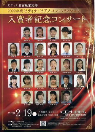 ←来年2月19日(日)開場13:30開演14:00名古屋・伏見・電気文化会館ザ・コンサートホールで2022年度ピティナ・ピアノコンペティション入賞者記念コンサートが開催されます。
