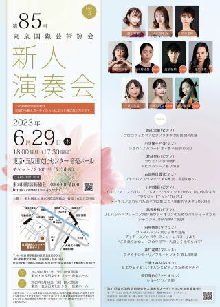 第85回東京国際芸術協会の新人演奏会が開催されます。