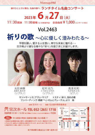 ←6月27日(火)11:30開演、宗次ホールで、ランチタイム名曲コンサートが開催されます。