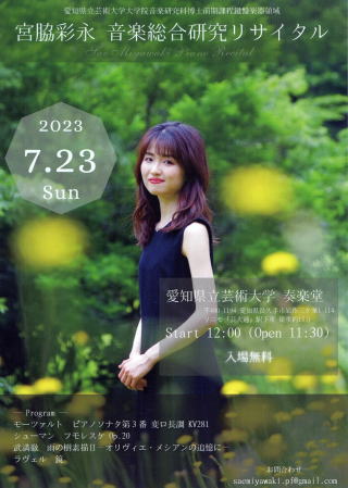 彩永さんは、現在、愛知県立芸術大学大学院博士前期課程2年生で、これが、大学院の研究リサイタルになるそうです。