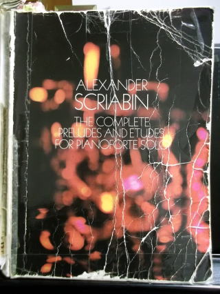 ←私のスクリャービンのエチュードの楽譜。プレリュードや、エチュードや大好きな曲が沢山あり、30年以上たってもうボロボロです。