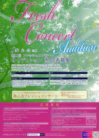 ∫奏心会主催 第11回フレッシュコンサート2024 オーディション参加者募集のお知らせ | 奏心会 WebSite (soshinkai.com)