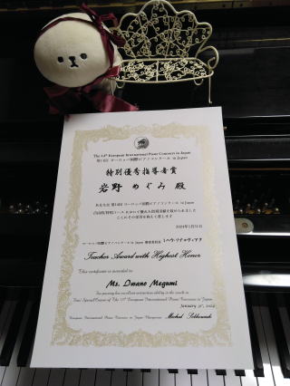 先日、行われた第14回東京ピアノコンクールの高校部門で審査員特別賞を受賞されたそうで、良かったですね。