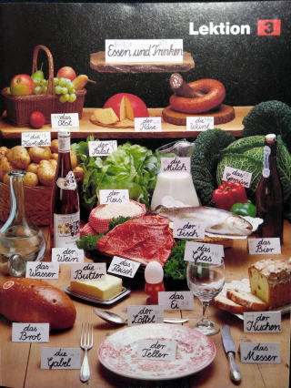 私が、一番好きなページ(笑)チーズは、デア ケーゼとか、お皿は、デア テラーとか、実物と一緒に単語を覚えると頭に入ります。