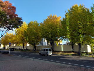 ←明和高校のレッスンの帰り道、私の家の近くの通りが、綺麗な紅葉に