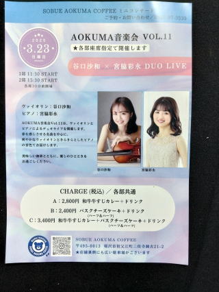 そして、次は、既にピアニストとして御活躍中の宮脇彩永さんの演奏会のご案内です。彩永さんは、今年、愛知県立芸術大学の修士を出られたばかりの今をときめくお若いキラキラのピアニストです。既に、演奏活動を積極的に行っておられ、順調に音楽家としての道の基盤が出来上がり、素晴らしいです。彩永さんは、今年は、新しい演奏のお仕事が始まり、企業様のお客様に向けて演奏する機会が増えて、そんな方々にどうしたら笑顔になって頂けるか、よりお客様目線での演奏を考えるきっかけとなり、ホスピタリティ精神の重要さを感じたとの事です。