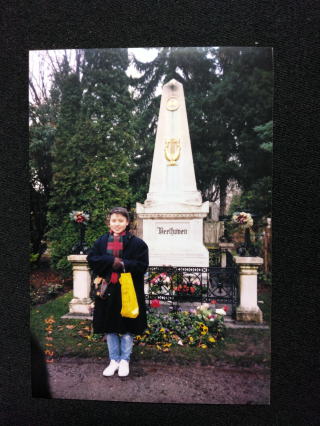 中央墓地にあるベートーヴェンのお墓の前で、23歳当時の私。