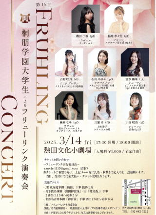 現在、桐朋学園大学3年在学中の清水陽菜さんが、御出演されます。