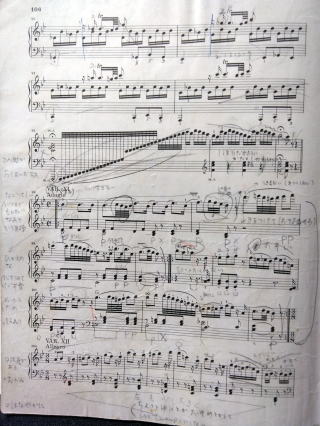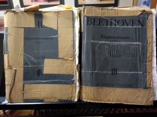 ←ボロボロのベートーヴェンの楽譜。海を越えて船便でウィーンにも送ったり、自分も、そして指導し始めて生徒達と共に一生懸命に働いてくれたヘンレ版です。