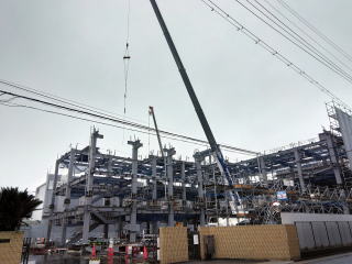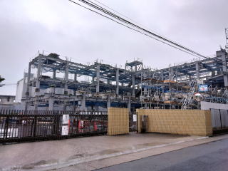 左の写真は、明和高校のホールの工事の現在の様子です。