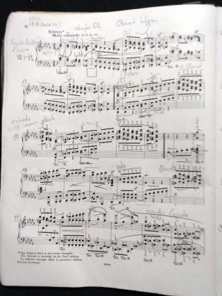 ←シューマンのソナタ3番の2楽章の1ページ目には、恩師が何を注意して書いて下さったのか見てみましょう。