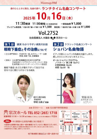 ←10月16日(木)は、宗次ホールでランチタイム名曲コンサートが開催されます。