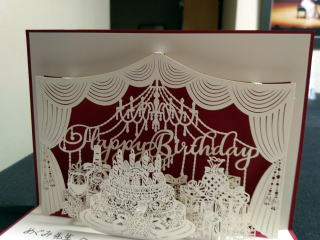 ←生徒さん達から誕生日のお祝いに素敵な花束や、カードを頂き、有難うございました。